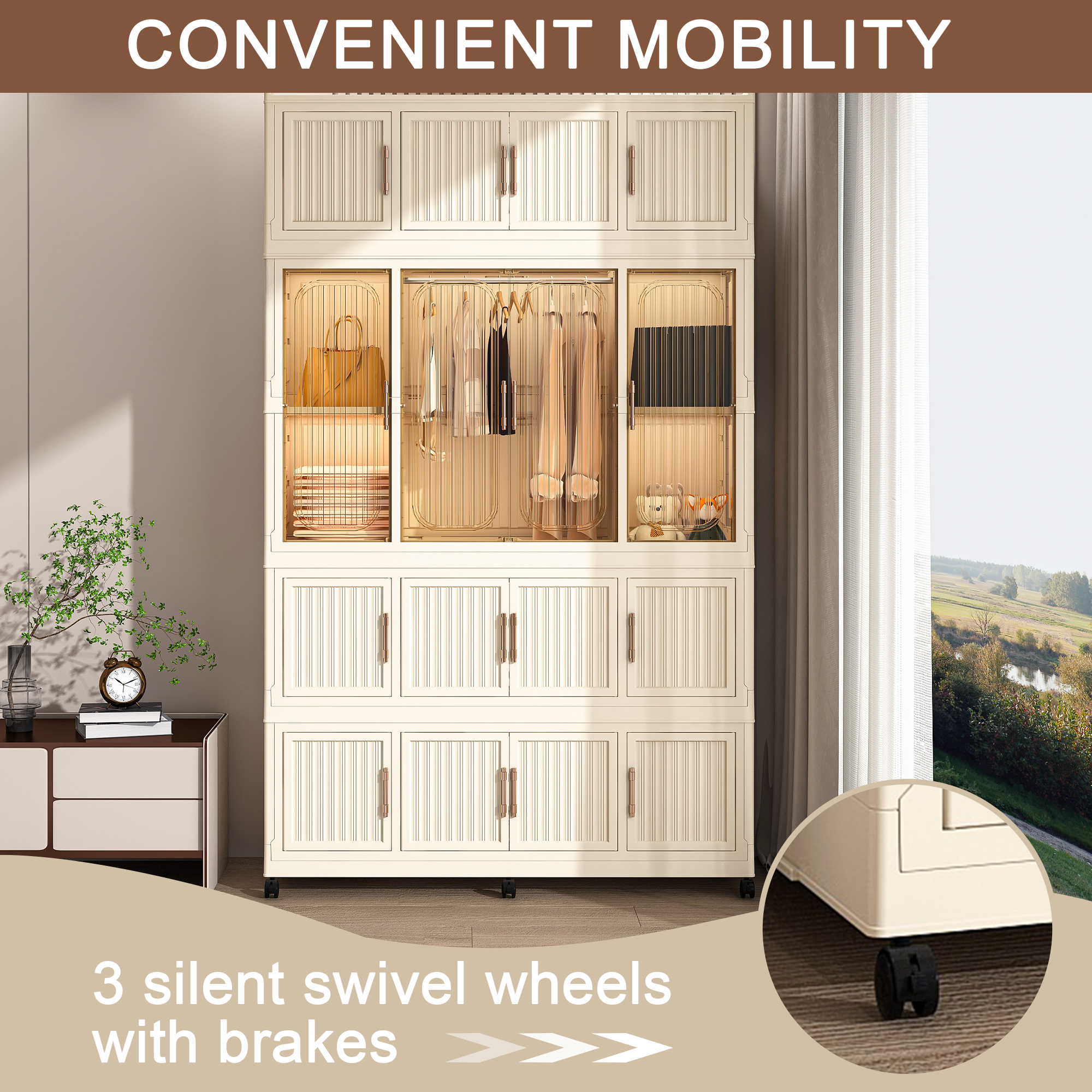 Portable Wardrobe Closet Storage Organizer with 17 Magnetic Doors, 17 Cubes, Hanging Rod & 6 Hangers