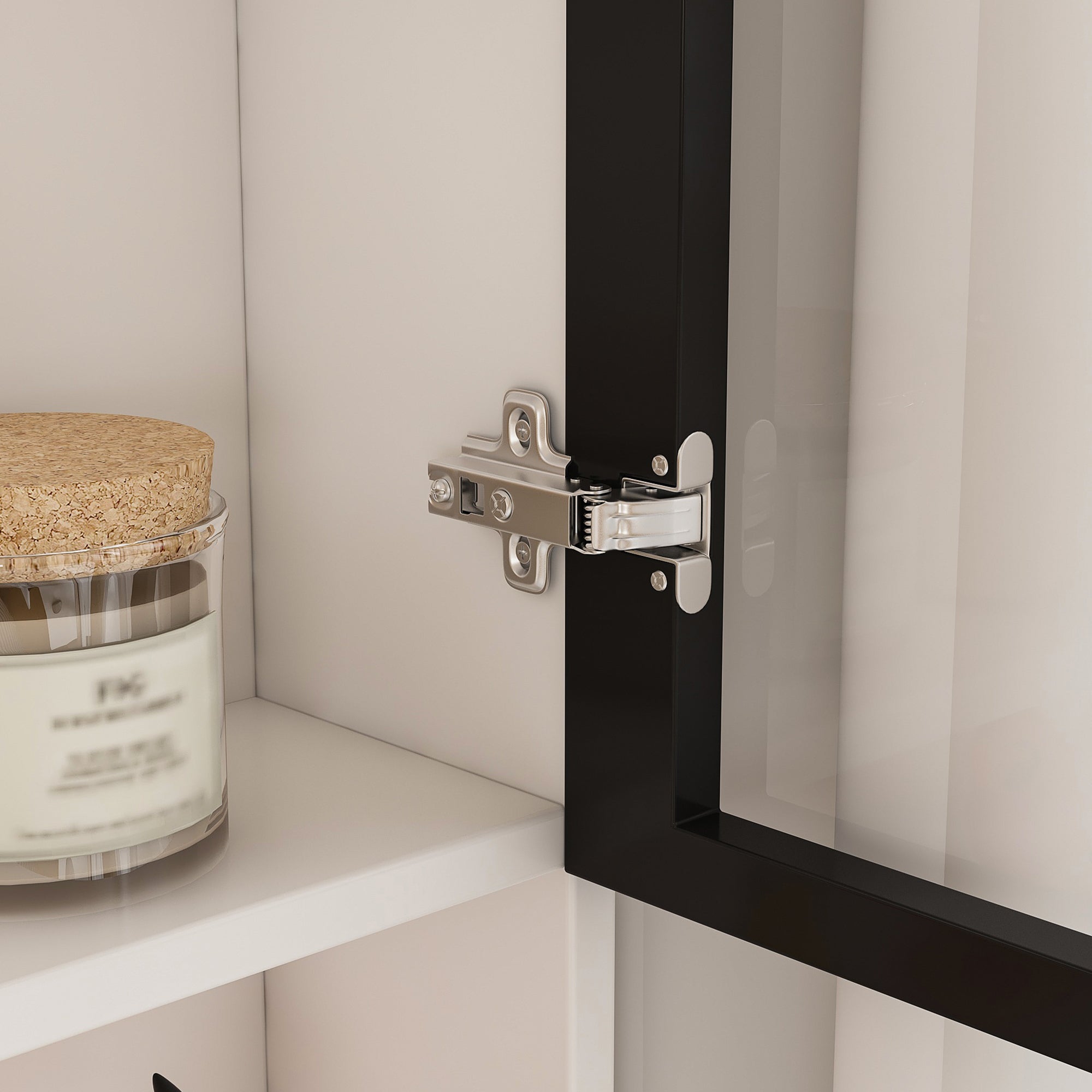 AIhouse White L Shaped Computer Desk With Glass Cabinets LED Lights USB Ports Keyboard Tray