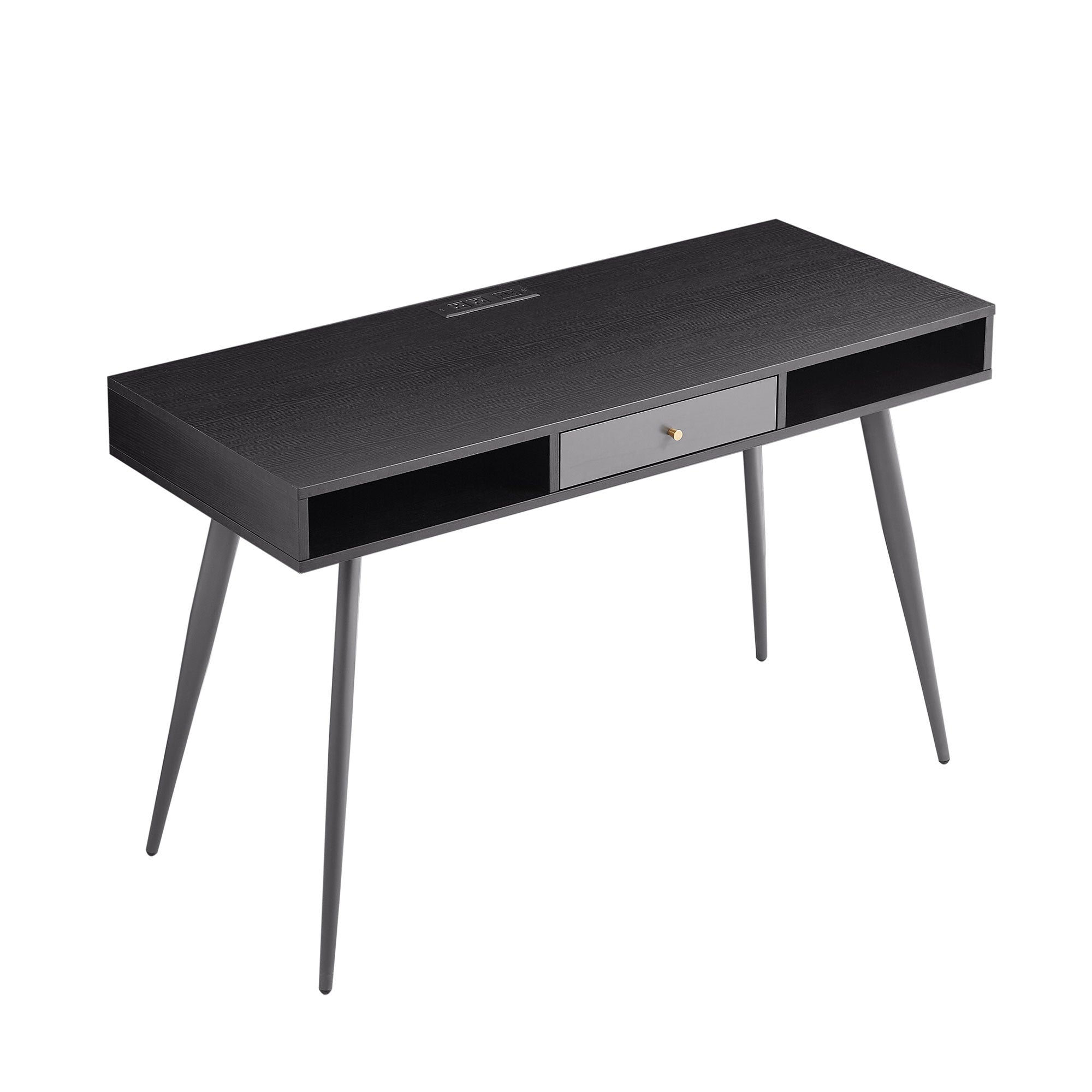 Upgrade your workspace with a Mid Century Desk featuring USB ports and a built-in power outlet — the perfect blend of vintage charm and modern convenience. This black MDF desk is designed to elevate any home office, study, or bedroom with a wide surface and smart storage.