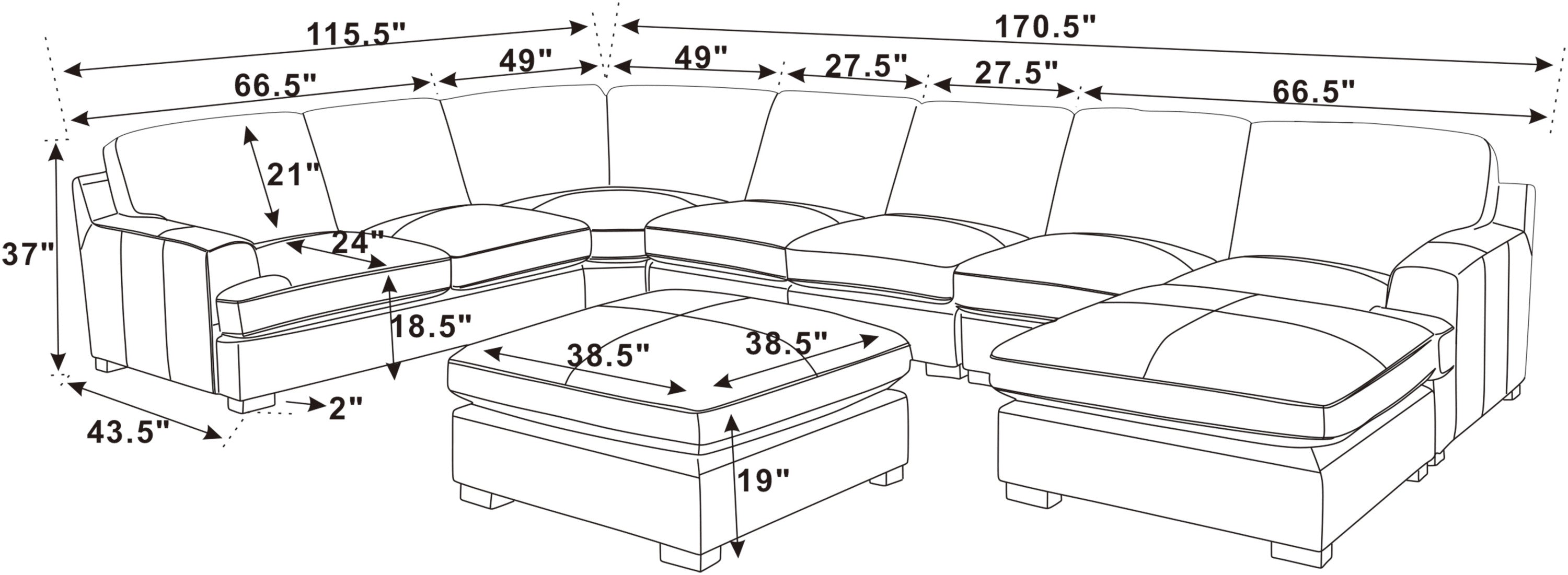- Dimensions: Assembled Length 170.50 in, Assembled Width 115.50 in, Assembled Height 37.00 in