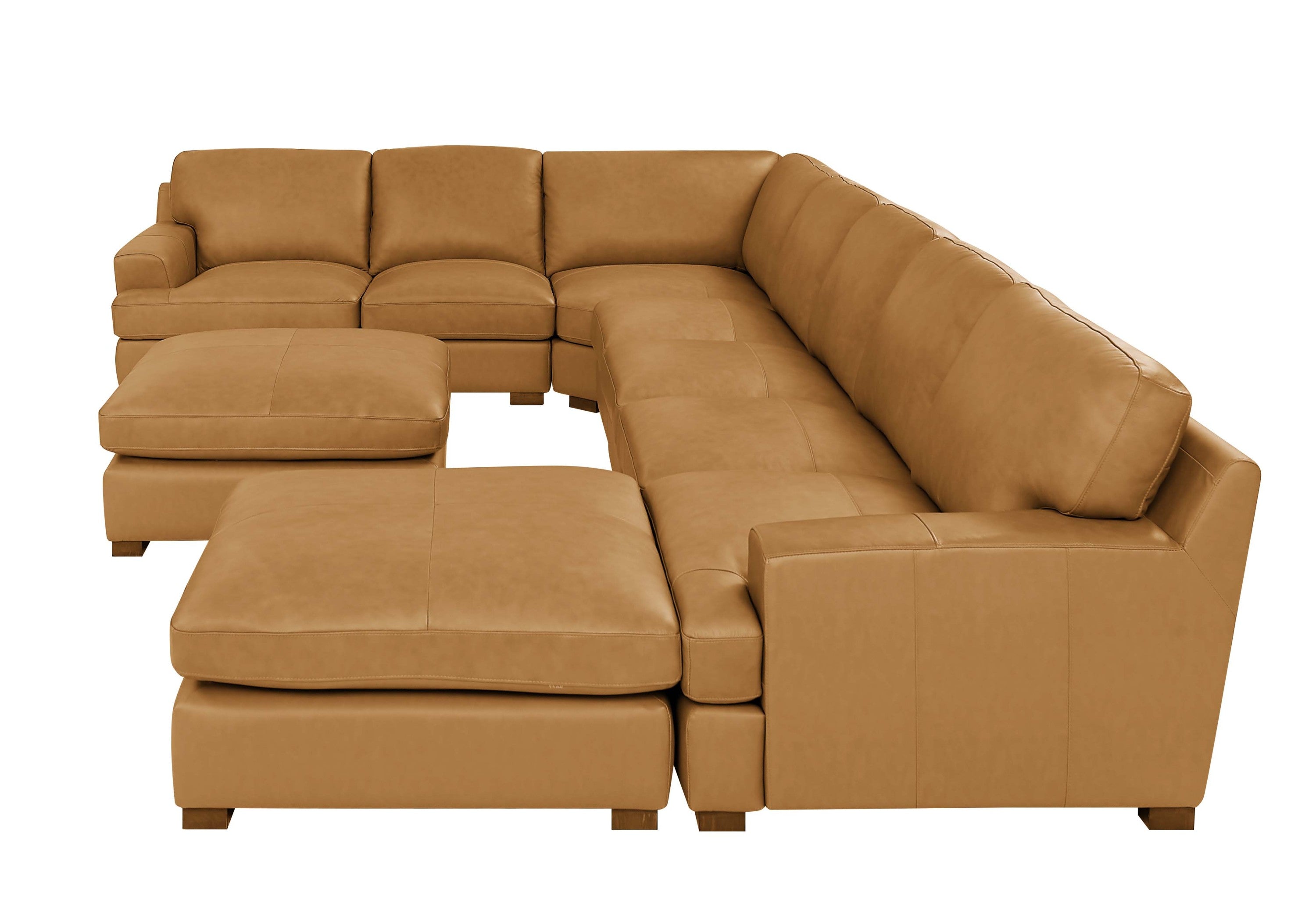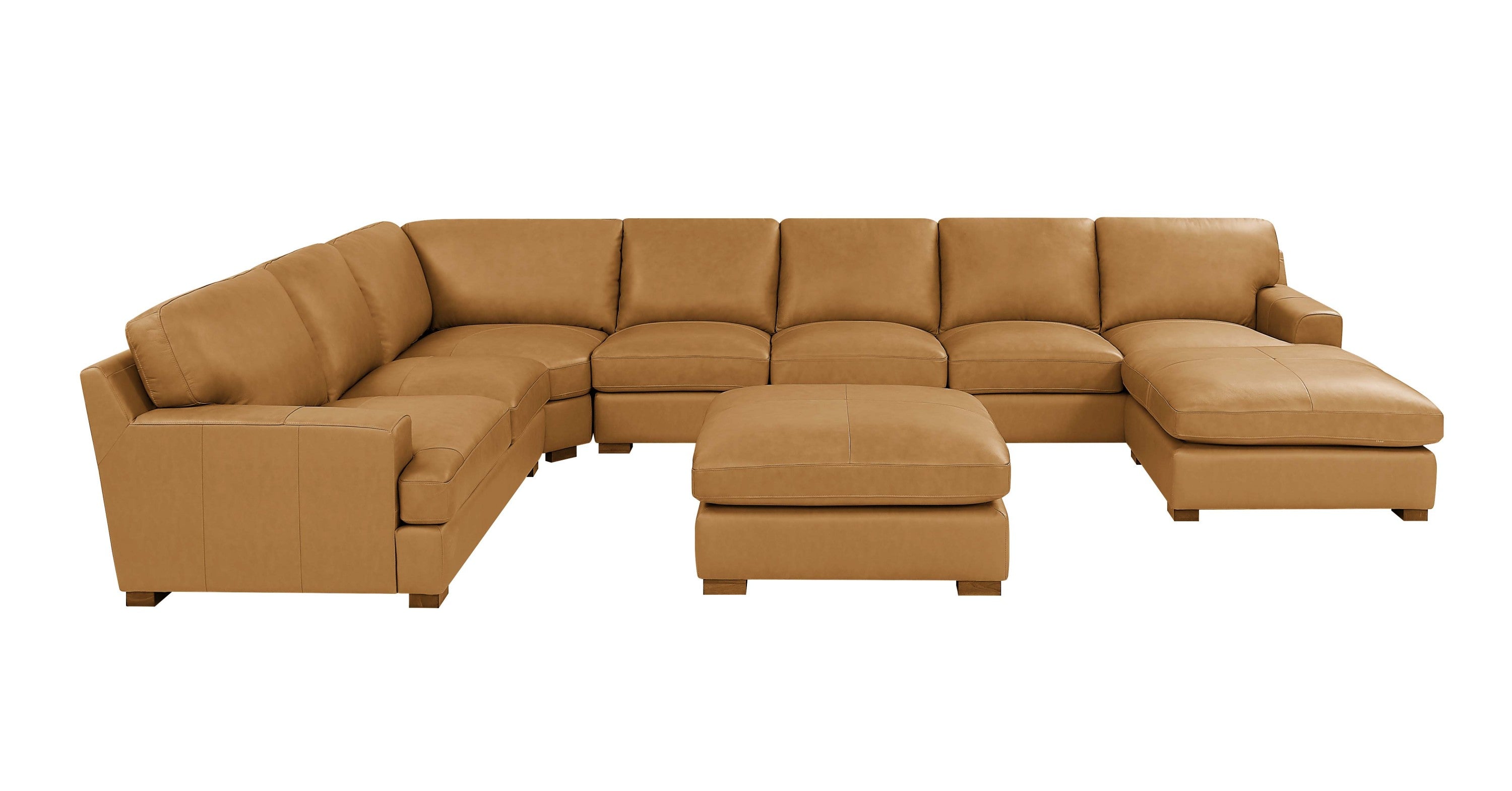 Experience elevated comfort and flexible living with the Leather Match Large Seating Modular Sectional. This expansive, seven-seat modular sofa blends premium leather aesthetics with practical, everyday durability, delivering a refined centerpiece for modern homes. With seating for seven, it suits large families and entertaining spaces. The ginger tone adds warmth while remaining versatile for both contemporary and traditional interiors.
