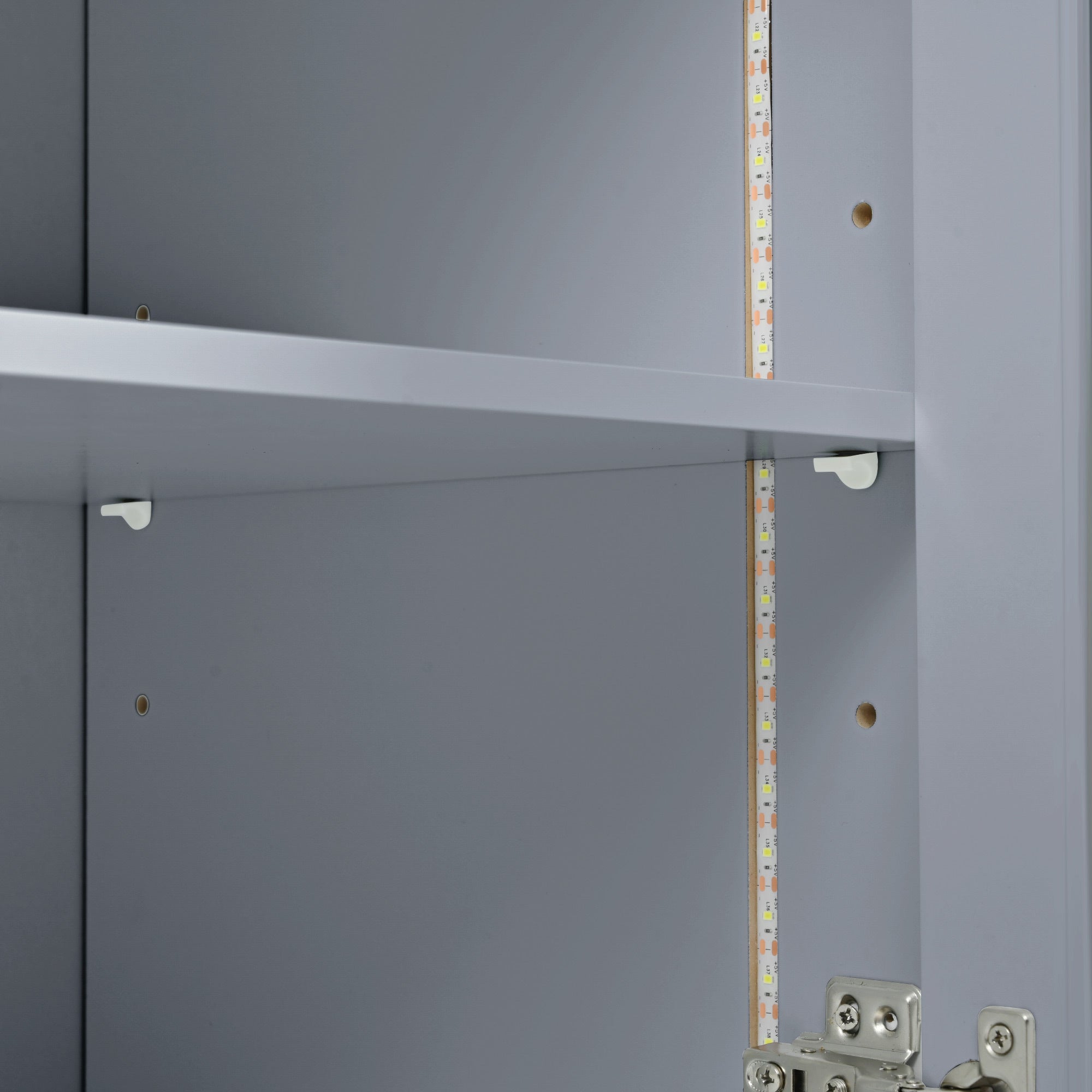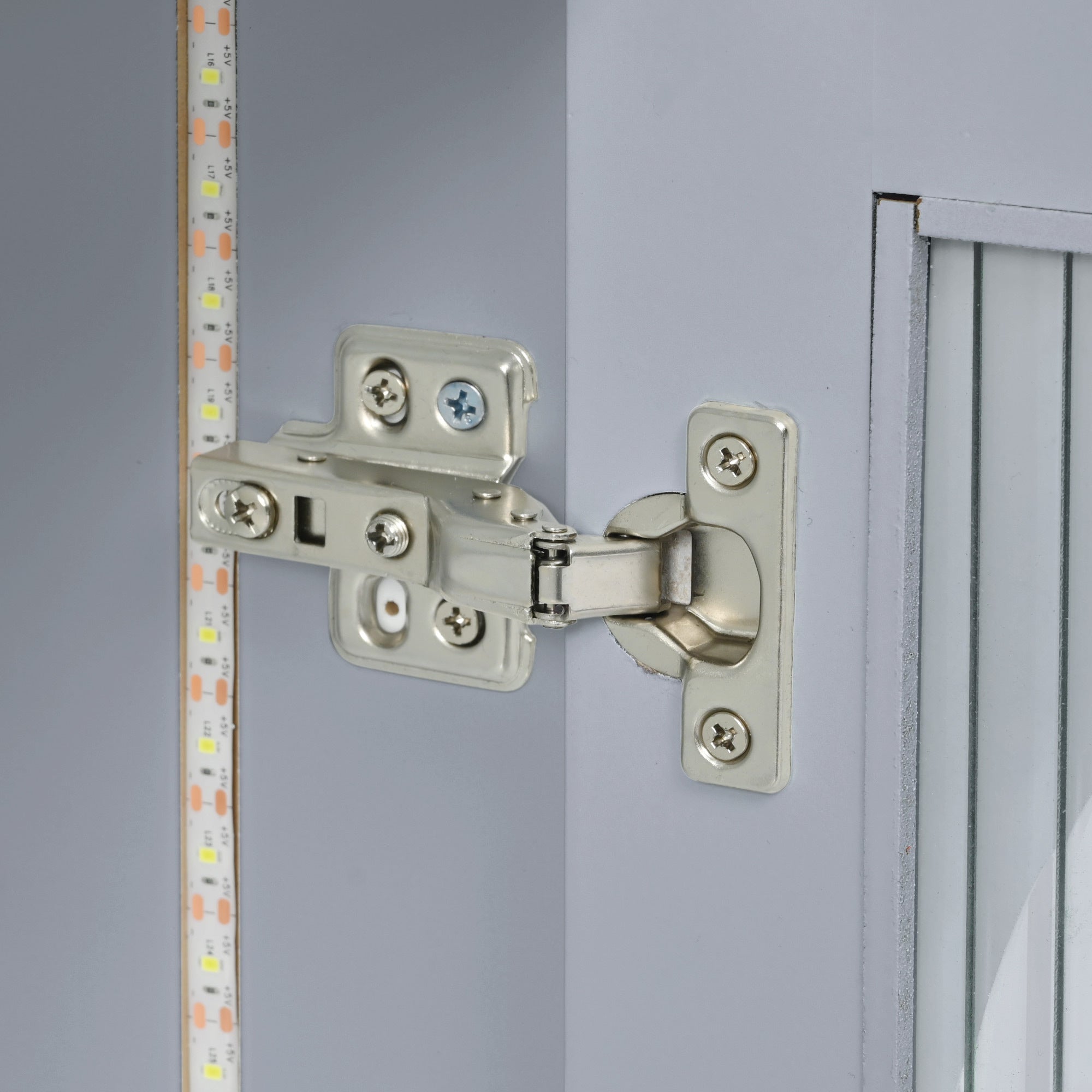 - Features: Movable Table; Power Outlet; LED Light Stripe; Fluted Glass Doors