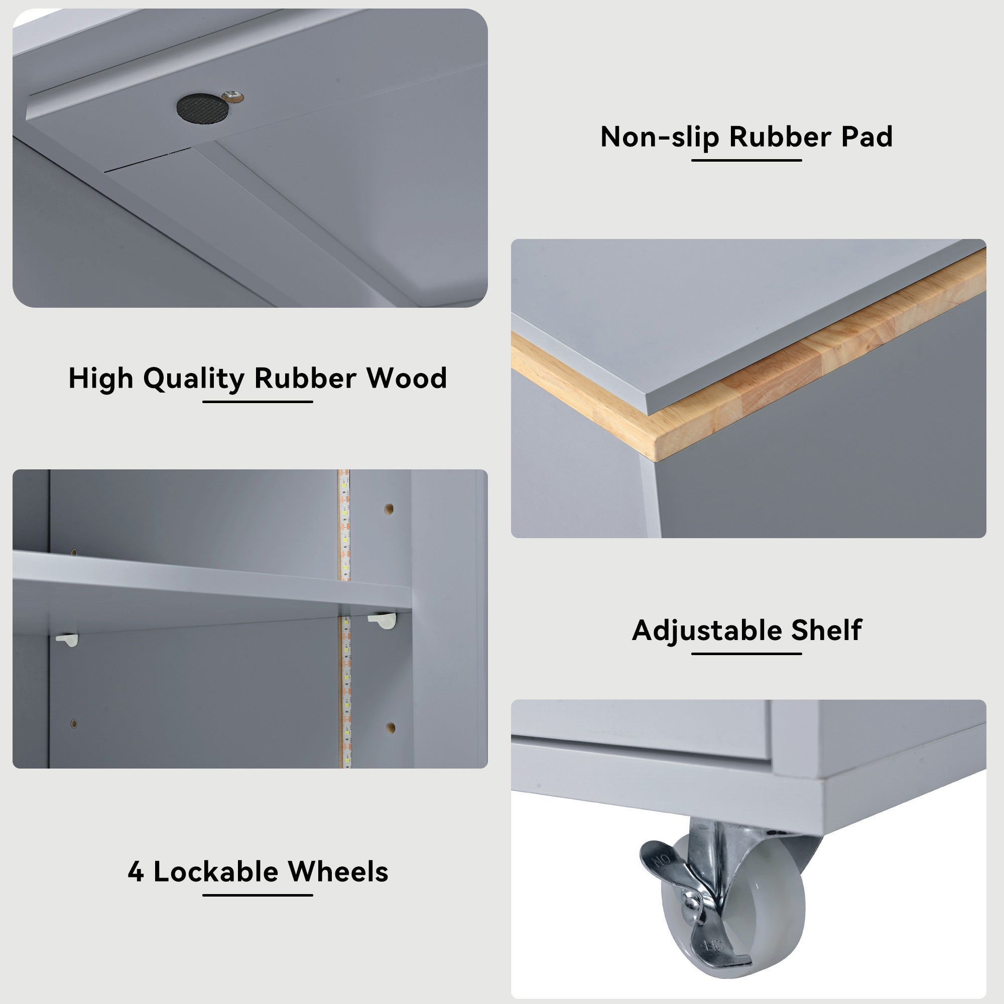 Experience culinary flexibility with the K&K Rolling Kitchen Island: a movable centerpiece featuring an extended table, LED lighting, and built-in power outlets. Its modular design lets you adjust spacing and angle between the island and table for prep, dining, or entertaining. Crafted from durable MDF with a rubber-wood top, this island blends classic European charm with modern convenience. Fluted glass doors glow with ambient LED stripes, while 8 rolling casters (4 lockable) provide easy repositioning. Two USB ports and three-prong sockets keep devices charged, aided by a 2-meter cord for flexible placement. Large storage includes an open shelf and a cabinet, with a maximum extension of 73.5 inches for extra work space.